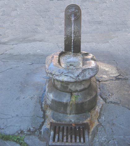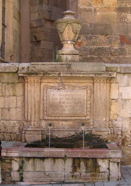 Como estamos al principio de la calle Azabachería, vamos a continuar hasta el final de esta calle, y en cuanto lleguemos al final no nos queda más opción que girar a la derecha, llegando entonces a la calle Plegarías, que bajamos hacia la Plaza Mayor, y un poco antes de llegar al final, a la derecha, en un lateral de la Casa Consistorial, nos encontramos otra de las fuentes de nuestra ruta.