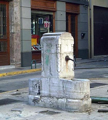 Giramos a la derecha, y subimos hasta al final de la calle. Aquí, donde empieza la calle Azabachería tenemos otra de nuestras fuentes del recorrido.